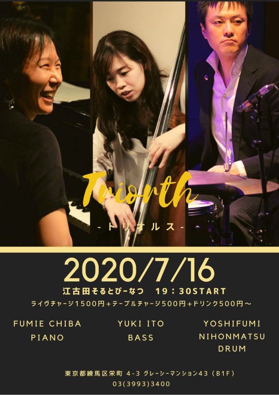 今日は江古田そるとぴーなつです Posted on 2020/07/16 投稿者: yukichi 0 今日は4月に延期になってしまったトリオのライブです3人のオリジナル、アレンジ曲などお届けします。2020/7/16(木)triorth@江古田そるとぴーなつstart 19:30-千葉史絵(pf)二本松義史(dr) 共有: クリックして X で共有 (新しいウィンドウで開きます) X Facebook で共有するにはクリックしてください (新しいウィンドウで開きます) Facebook いいね 読み込み中… 関連