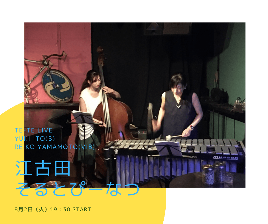 今日は江古田そるとぴーなつでライブです Posted on 2022/08/02 投稿者: yukichi 0 今日はヴィブラフォンの涼しげなサウンドをききませんか?ということで、涼しい室内でデュオライブですお越しをお待ちしております〜2022/8/2(火)te-te@江古田そるとぴーなつstart 19:30- 山本玲子(vib) 共有: クリックして X で共有 (新しいウィンドウで開きます) X Facebook で共有するにはクリックしてください (新しいウィンドウで開きます) Facebook いいね 読み込み中… 関連