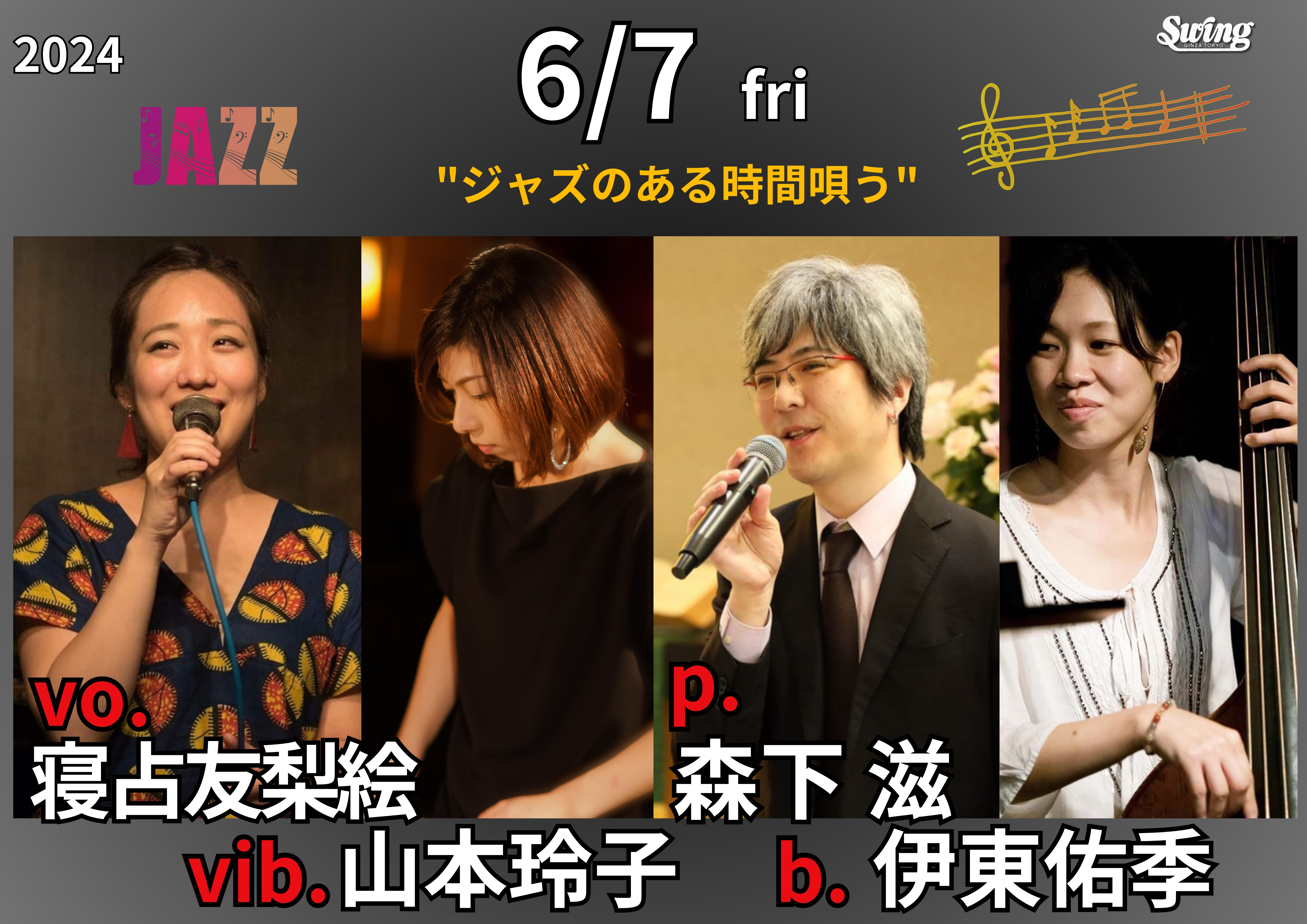今日は銀座スイングでライブです Posted on 2024/06/07 投稿者: yukichi 0 2024/6/7(金)カルテット@銀座スイングopen 18:00 / 1st 19:00- 2nd 20:30-寝占友梨絵(vo)山本玲子(vib)森下滋(pf) 共有: クリックして X で共有 (新しいウィンドウで開きます) X Facebook で共有するにはクリックしてください (新しいウィンドウで開きます) Facebook いいね 読み込み中… 関連