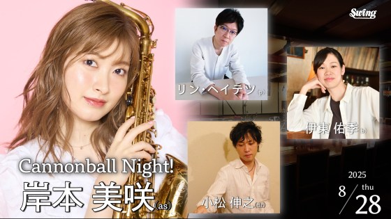 今日は銀座スイングでライブです Posted on 2025/08/28 投稿者: yukichi 0 2025/8/28(木)※配信あります岸本美咲4キャノンボールナイト@銀座スイングopen 18:00 / 1st 19:00- 2nd 20:30-岸本美咲(sax)リン・ヘイテツ(pf)小松伸之(dr)配信申し込みはこちらから 共有: クリックして X で共有 (新しいウィンドウで開きます) X Facebook で共有するにはクリックしてください (新しいウィンドウで開きます) Facebook いいね 読み込み中… 関連