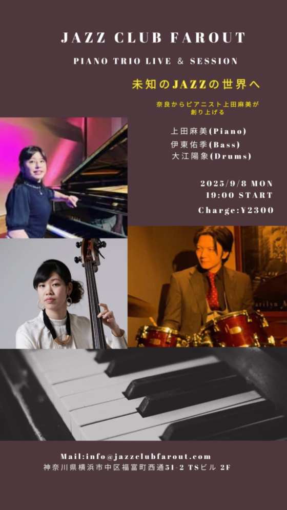 今日は横浜ファーラウトでライブとジャムセッションです Posted on 2025/09/08 投稿者: yukichi 0 2025/9/8(月)上田麻美3@横浜ファーラウトstart 19:00-上田麻美(pf)大江陽象(dr)ライブとジャムセッションになりますジャムセッション参加もお待ちしております 共有: クリックして X で共有 (新しいウィンドウで開きます) X Facebook で共有するにはクリックしてください (新しいウィンドウで開きます) Facebook いいね 読み込み中… 関連