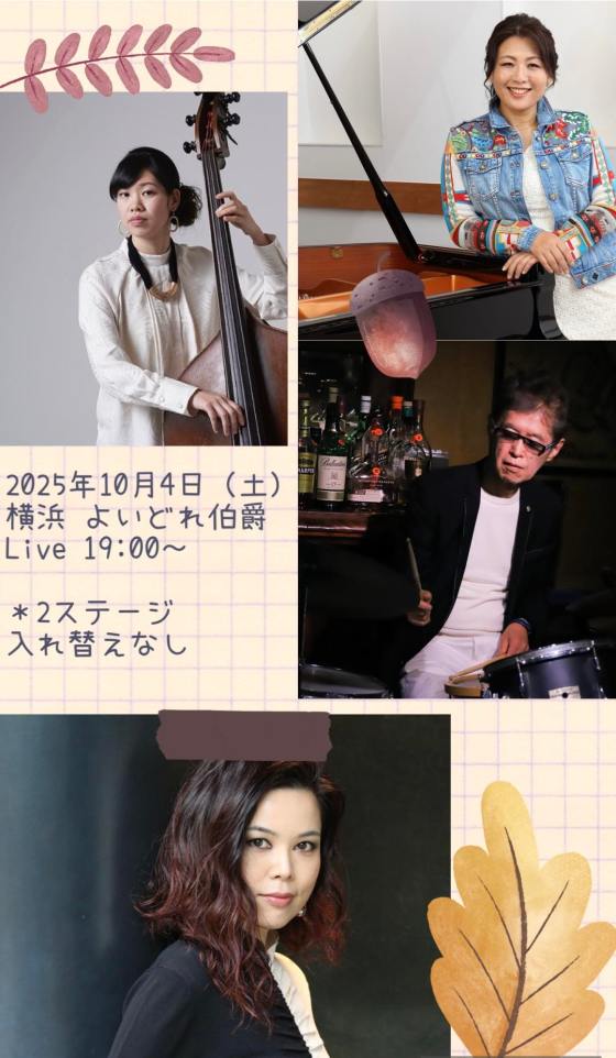 今日の夜は関内よいどれ伯爵でライブです Posted on 2025/10/04 投稿者: yukichi 0 2025/10/4(土夜)Maya4@関内よいどれ伯爵open 18:00 / 1st 19:00- 2nd 20:30-MAYA(vo)寺村容子(pf)松尾明(dr) 共有: クリックして X で共有 (新しいウィンドウで開きます) X Facebook で共有するにはクリックしてください (新しいウィンドウで開きます) Facebook いいね 読み込み中… 関連