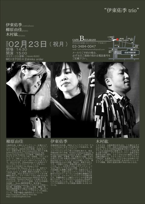 3/29(日)伊東佑季トリオ+@江古田そるとぴーなつ(柳原由佳pf、木村紘dr、酒井麻生代fl)